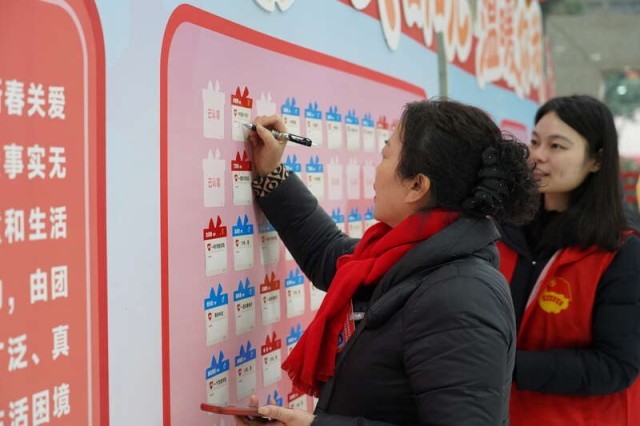 1月19日、20日,共青团九龙坡区委联合九龙坡区人大常委会办公室、区政协办公室把心愿认领活动搬到了区两会报到现场。“一件衣服”“一套学习用品”“大米、油”……代表委员们在红心墙前驻足,主动认领了192个“新年心愿”,为孩子们送上一份冬日里的温暖与关怀。
