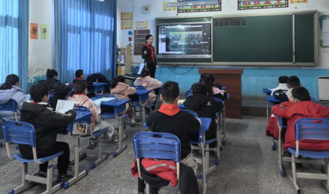仪式结束后,乐达国际艺术学院教师走进课堂,带领孩子体验不一样的音乐课,一起学唱石家庄市少先队员原创主题曲《少年发光》,带领孩子感受音乐的韵律之美。
