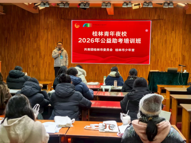 近日,由团广西壮族自治区桂林市委指导、桂林市少年宫承办的桂林青年夜校2026年公益助考培训班开班,100余名青年考生参与培训。