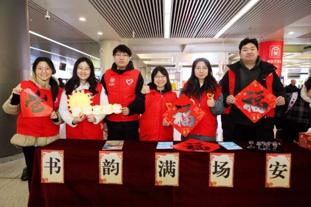 结合春运出行特点与旅客需求,志愿者们还推出系列特色服务:在候车区域设置便民服务台,配备热水、应急药品、充电设备等物资,解决旅客即时需求;开展“暖冬送福”活动,为返乡旅客送上春联、福字等新春纪念品,让归乡之路满载年味与暖意;在高校、务工人员集中区域,配合开展出行咨询与错峰引导服务,助力重点群体有序出行。