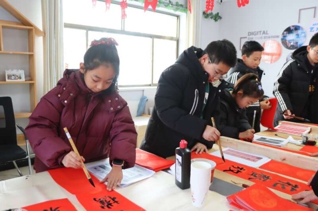 室外,文艺表演热闹上演;室内,社区群众与志愿者围坐一堂,分工协作揉面、擀皮、包饺子。另一边,青少年们写春联、剪窗花,墨香与年味交织,增添喜庆氛围。
