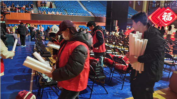 经过统一培训,志愿者在活动现场承担人员引导、场地秩序维护、搬运桌椅、后勤保障等服务工作,确保活动流程高效有序。
