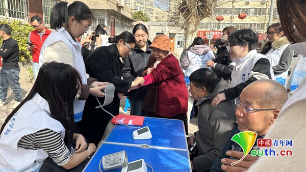在“学雷锋志愿服务”示范活动现场,陕西能源职业技术学院依托各学院专业优势,组建特色志愿服务队伍。智能机电学院志愿者聚焦非遗文化传承,开展皮影、剪纸等展示与讲解;医学康养学院岐黄志愿服务队在咸阳市西北二棉社区、咸阳市沣渭中心活动广场等地开展3场志愿活动,提供中医义诊、康复理疗、健康科普等便民服务;在咸阳市渭城区中铁十局社区,医学技术学院健康医+1志愿服务队发挥医学专业特长,为社区老年居民提供血压监测、推拿按摩、艾灸理疗等健康护理服务。