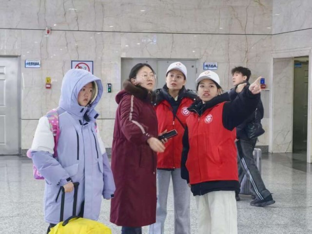 返乡大学生的身影,同样温暖有力。在长春站,西北民族大学学生刘添文为外地游客介绍东北特色文旅项目,帮对方规划游玩路线。在长春西站,无锡学院学生于雨桐主动为旅客提供问询引导、行李搬运,用青春笑容传递城市善意。梅河口康美职业技术学院学生彭敬淇全程护送盲人旅客上车,细心照料孕妇旅客。来自长春师范大学的王昊即便嗓子沙哑了,还是坚守在火车站引导岗位。