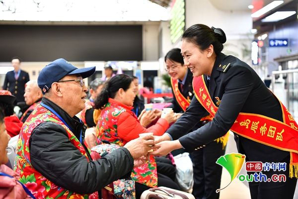 辽宁今年首趟银发旅游专列从大连启程。中国青年网通讯员 陈明 供图