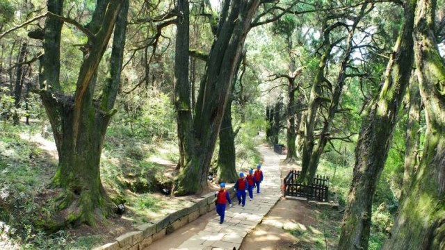 国网广元供电公司森林防火青年突击队在翠云廊徒步巡护古柏。共青团广元市委供图