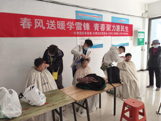 在乐康社区活动现场,医务志愿者免费为居民测量血糖、血压,开展口腔检查,解答居民健康咨询,围绕老年人常见慢性病开展健康指导。义剪服务同步开展,理发师志愿者耐心细致修剪,为社区老人打理出整洁利落的发型。