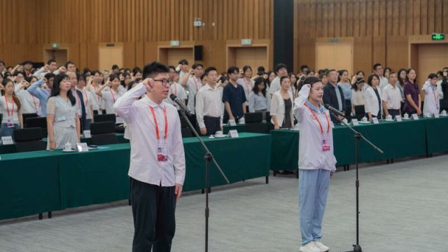在誓师大会现场,志愿者身着全新“小蜜蜂”志愿服装整齐列队,喊出“为城市添彩,为第139届广交会圆满成功奉献青春力量”的誓词。自第100届广交会以来,广州已累计组织10万余人次的青年志愿者投身广交会志愿服务,累计服务时长突破62万小时。