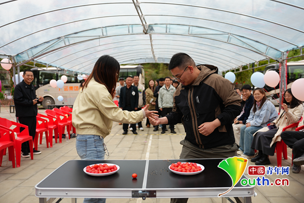 午后,“坝坝相逢·青春结缘”趣味团建活动在阴平村村委会热闹开场。在主持人引导下,青年们分组开展“寻缘启事”“听歌识曲”“心有灵犀”“果趣争锋”等互动游戏,青年们在默契配合与欢笑中迅速拉近距离,最后的“幸运套圈”赢礼品环节,更是将现场气氛推向顶点。