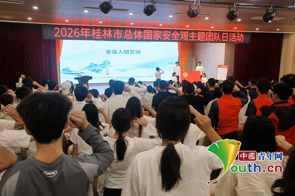 4月14日,团广西壮族自治区桂林市委联合桂林市委国安办等单位在桂林信息科技学院开展“统筹发展和安全 护航‘十五五’新征程”主题团队日活动,来自桂林市高校、中小学、企事业单位等各领域的280余名团员青年、少先队员代表参加活动。