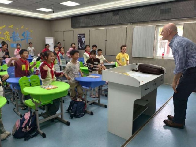 该校英国外教Russell的加入,更为志愿服务课堂增添创新色彩。他的游戏化教学让孩子们在真实语境中勇敢开口。一名小学生在日记中写道:“原来英语不只是试卷上的题目,更是和世界对话的工具。”