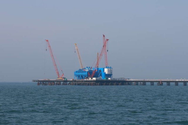 长海大桥项目施工现场。团辽宁省委供图