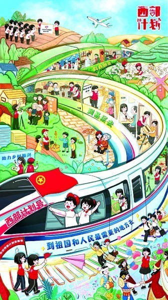他们脸上笑容灿烂纯真,自称享受着“远方与眼前合二为一的快乐”。他们热情又谦逊,不认为自己比当地人更先进,是“施予者”“提供帮助者”,而认为自己是一个“接受馈赠者”,一个与西部地区平等相处、守望相助的朋友。这群青年如是看待西部、走进西部、扎根西部,更具有时代意味!